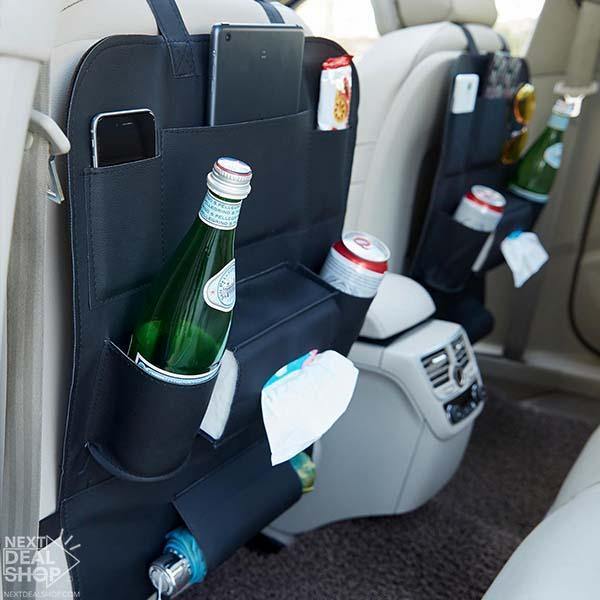 Limpe a bagunça em seu carro com este organizador de banco traseiro de carro bem projetado! Use-o para guardar garrafas, telefones, tecidos, revistas, guarda-chuvas e muito mais!